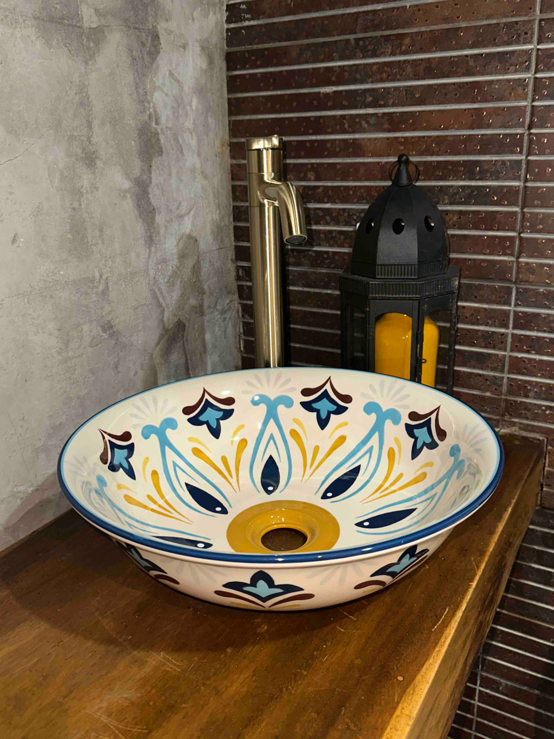 Handpainted ceramic basin