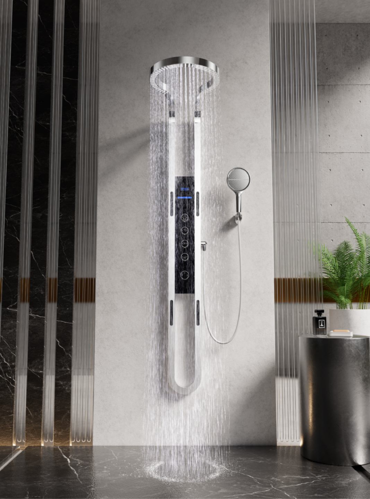 Waterfall halo shower post with jets,